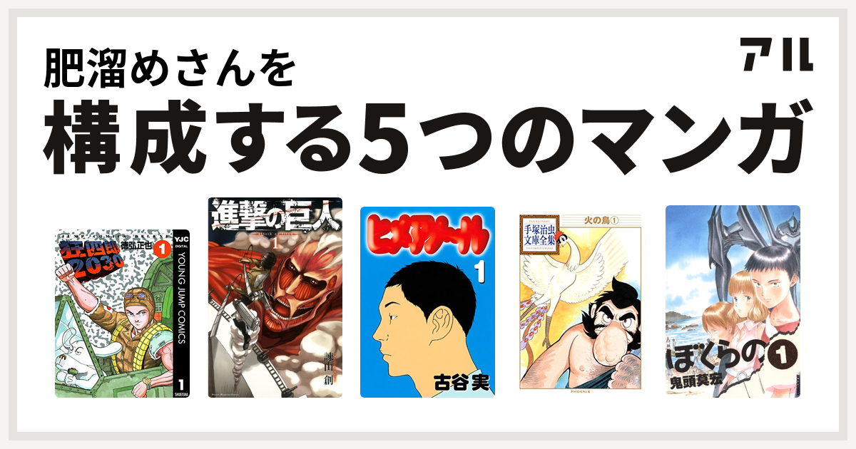 肥溜めさんを構成するマンガは狂四郎30 進撃の巨人 ヒメアノ ル 火の鳥 ぼくらの 私を構成する5つのマンガ アル